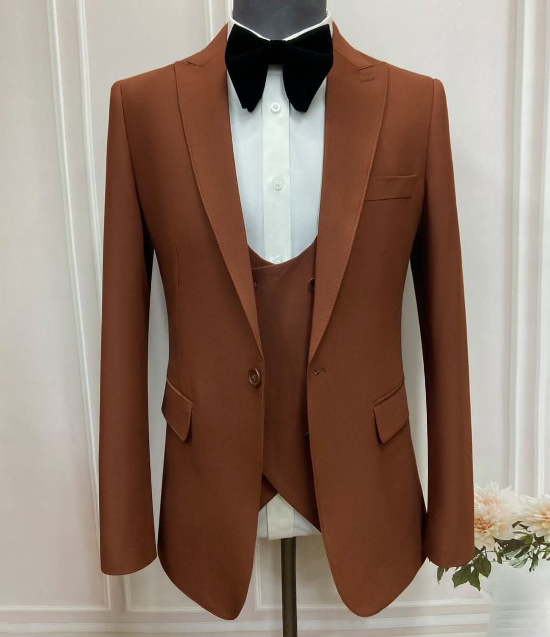Exude sophistication with this refined three-piece formal suit, tailored for special occasions and stylish events. Featuring a sleek blazer, matching waistcoat, and classic white shirt, this ensemble is completed with a bold velvet bow tie for a sharp and timeless look. Ideal for weddings, galas, and formal gatherings.