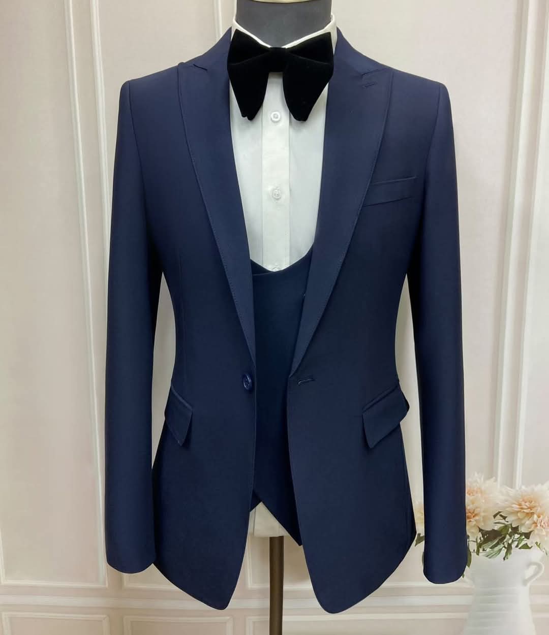 Exude sophistication with this refined three-piece formal suit, tailored for special occasions and stylish events. Featuring a sleek blazer, matching waistcoat, and classic white shirt, this ensemble is completed with a bold velvet bow tie for a sharp and timeless look. Ideal for weddings, galas, and formal gatherings.